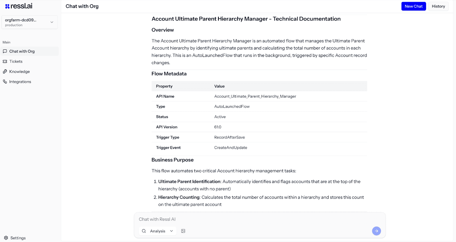 Ressl.ai helps the admins and developers by removing the slow, painful parts of the job: integration scoping, root-cause analysis, logic tracing, documentation, and understanding “what happens if.”